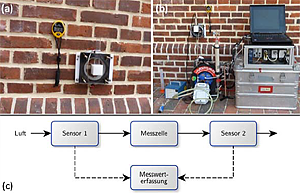 Im Vorhaben wurden auf diese Weise Trocknungsraten nach einer zuvor durchgeführten Messung der kapillaren Wasseraufnahme bei Durchströmung der Kammer mit Umgebungsluft bestimmt. Es steht somit nun ein Messverfahren für die Trocknungsmessung von Mauerwerk in situ zur Verfügung.
